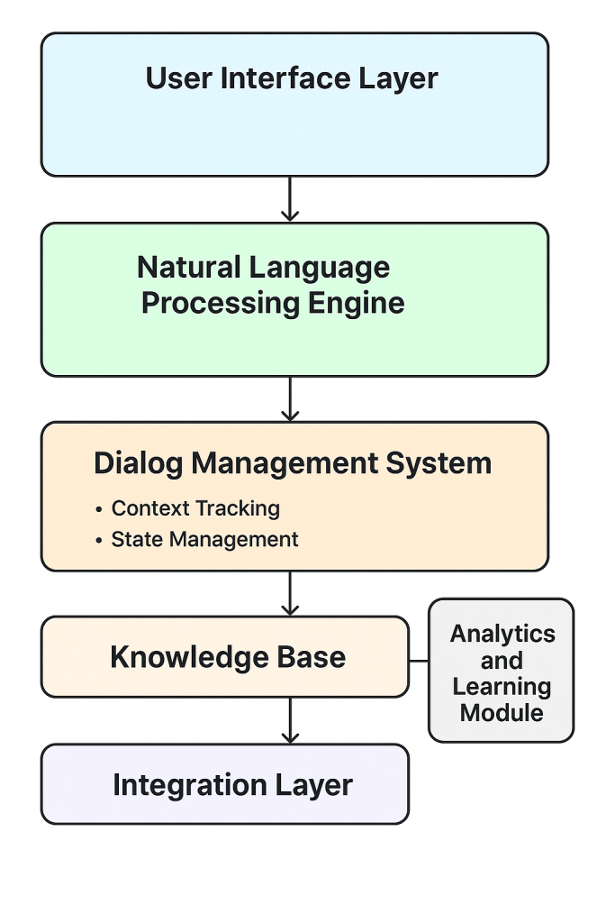 - Dialog Management System: The director governing conversation flow, remembering context, and determining what’s next.
