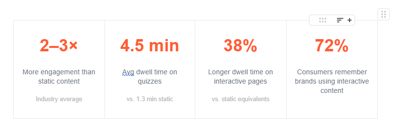 Interactive experiences, quizzes, calculators, assessments, polls, product recommenders, behave fundamentally differently from blog posts and landing pages. With a blog post, you’re broadcasting. With a quiz or calculator, you’re in a conversation. The user is committing their time, their thoughts, and their expectations, and that psychological contract changes everything about how they engage.